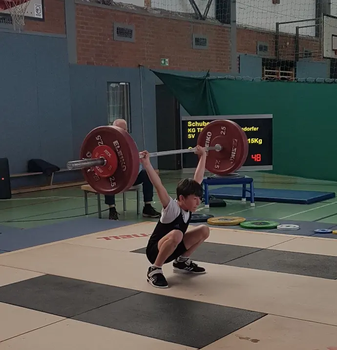 Landesmeister Ben Schubert mit 19Kg Reißen/23Kg Stoßen/42Kg im olympischen Zweikampf
