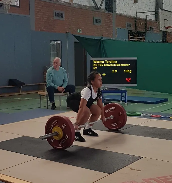 Tim König (KöGe 83,4 Kg) vom TSV Schwerin stellte seine persönliche Bestleistung im Reißen ein (83 Kg) und steigerte sich im Stoßen auf 106 Kg. Im olympischen Zweikampf verbesserte er sich auf 189 Kg (125,80 Pkt.). Die angestrebte Norm zur Teilnahme an der DM im Dezember 2025 mit 210 Kg im olympischen Zweikampf liegt nunmehr für Tim im Bereich des Möglichen.
