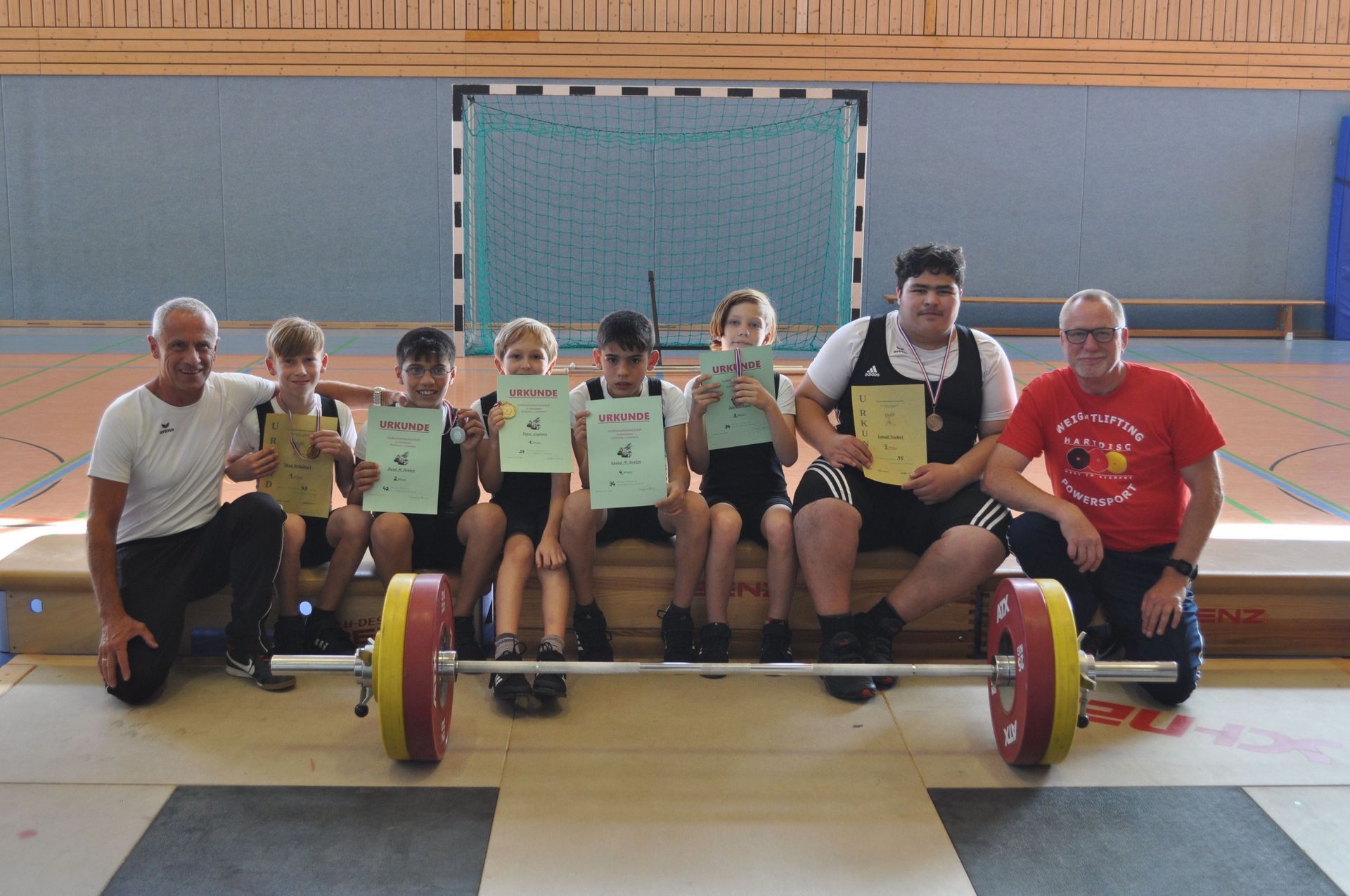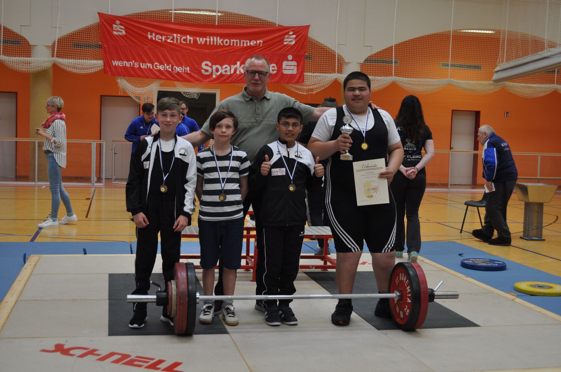 Alle Jungs waren sehr motiviert und so wurden insgesamt 12 persönliche Bestleistungen aufgestellt. Auch das technische Niveau konnte sich sehen lassen. So gab es bei 9 Startern mit möglichen 54 Versuchen im Reißen und Stoßen nur 7 Fehlversuche. Herausragend waren die Leistungen von Max Schubert AK 13 (18Kg Reißen; 23Kg Stoßen; 41Kg im Zweikampf). Auch Awad Alibrahim AK 12 (17Kg; 22Kg; 39Kg) und Ismail Naderi AK 15 (40Kg; 53Kg, 93Kg) haben ihre Saisonleistungen bestätigt. Gabriel Pawels (16 Kg; 15 Kg; 31 Kg) und Khaled Alibrahim (16 Kg; 17 Kg; 33 Kg) in der AK 11 setzten ihren Aufwärtstrend weiter fort. Bei Ihrem ersten Wettkampf schlugen sich Mohamed Hariri AK 13 (12Kg; 16Kg; 28Kg) und sein Bruder Achmed AK 10 (8 Kg; 10 Kg; 20 Kg) recht achtbar. Peter Engmann AK 10, als jüngster Heber, erreichte mit 11 Kg im Reißen eine neue persönliche Bestleistung.