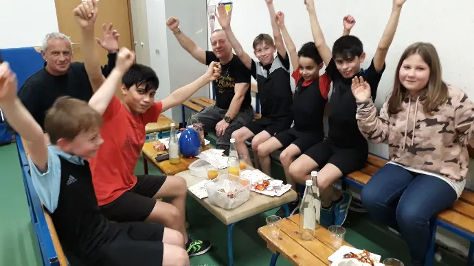 Zum Abschluss wurden Max Schubert, Awad Alibrahim (beste Wettkämpfer), Khaled Alibrahim und Gabriel Pawels (beste Newcomer) für ihre Saisonleistungen besonders geehrt. Es gab noch einen regen Gesprächsaustausch zwischen Eltern, Trainerteam und Gästen.