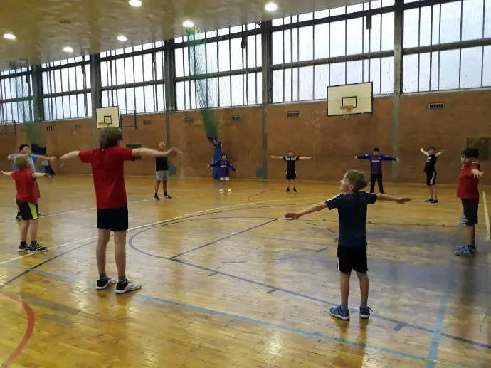 Im Anschluss begeisterte Marco mit einem Übungsprogramm aus seinem aktuellen Projekt „Berlin hat Talent“ beim Landessportbund Berlin. Der Schwerpunkt liegt darin, die Kinder für einen regelmäßigen Sport im Sinne eines gesunden Lebensstils zu begeistern. Und Marco hatte sofort alle Kinder-/und Jugendlichen infiziert.