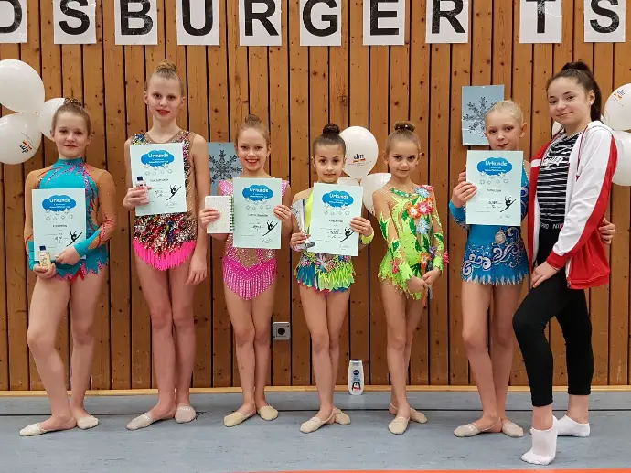 Im September absolvierten Jana, Ksenia, Isabella, Anastasia P., Luise, Helene und Anastasia Th. den Landeskadertest in der RSG mit seinen Bestandteilen Athletik/ Beweglichkeit, Tanz, Körpertechnik und Gerättechnik.