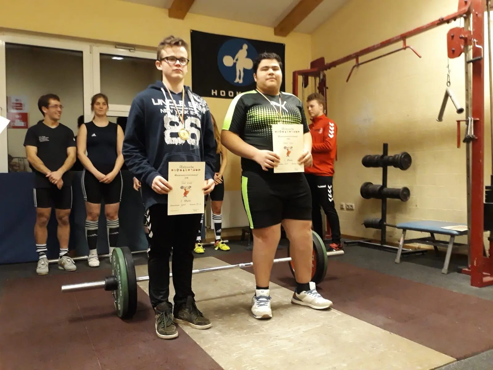 Für drei Heber gab es eine Extragabe vom Präsidenten des GKMV, Christian Ditz. In Anerkennung ihrer sportlichen Leistungen im laufenden Jahr spendete er persönlich drei neue Heberanzüge. Die Freude bei Peter Engmann, Ismail Naderi und Tim Siegert war natürlich groß.