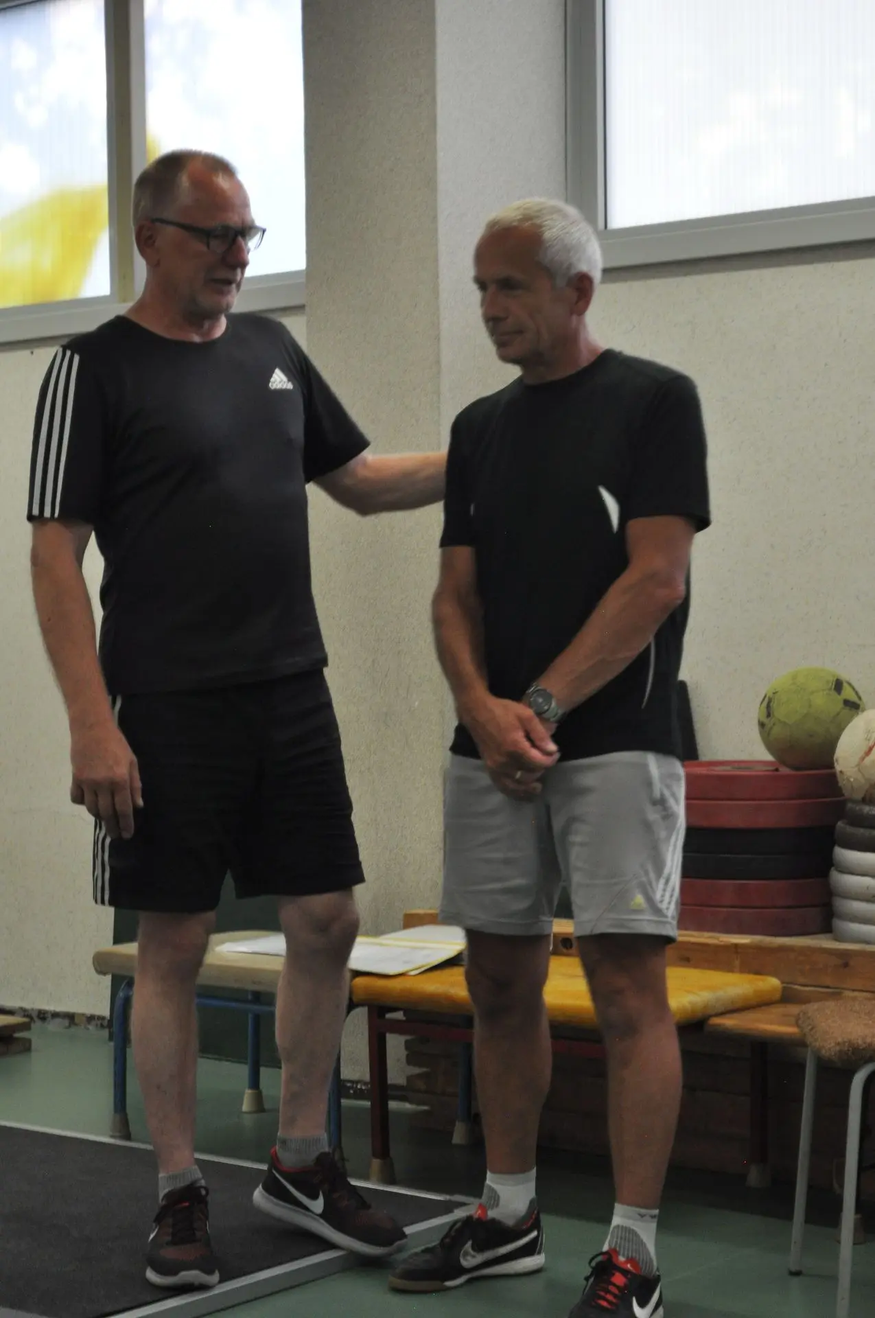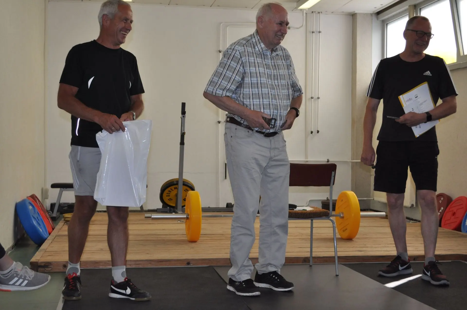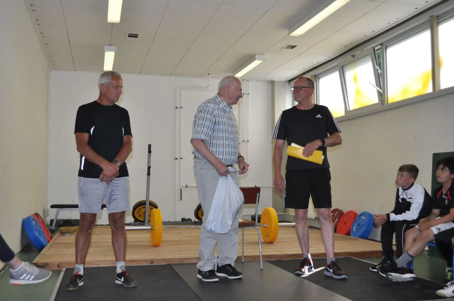 Als Ehrengast kam Walter Thiel, Gründungsvater des Gewichthebens in Schwerin. Er gab einen kurzen Einblick in die „alten und erfolgreichen Zeiten“ mit Beginn 1971 und sorgte für ein Raunen, als er damalige Heberutensilien zeigte und diese zur weiteren Aufbewahrung an die „Jungs“ übergab. Walter und seine Frau Christel sind weiterhin sehr mit dem Gewichtheben verbunden. So spendeten sie 300 € für die Kinderabteilung.