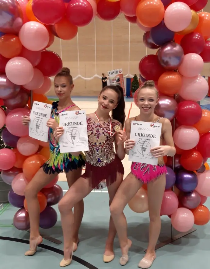 Die TSV Gymnastinnen starteten mit Ball und Keulen im Jahrgang 2007-2006 und im Jahrgang 2005. Bei ihrem ersten Auslandsstart in der RSG konnten Anastasia Pataman und die Zwillingsschwestern Helene und Luise Aßmann in der Altersklasse 11/12 überzeugen.