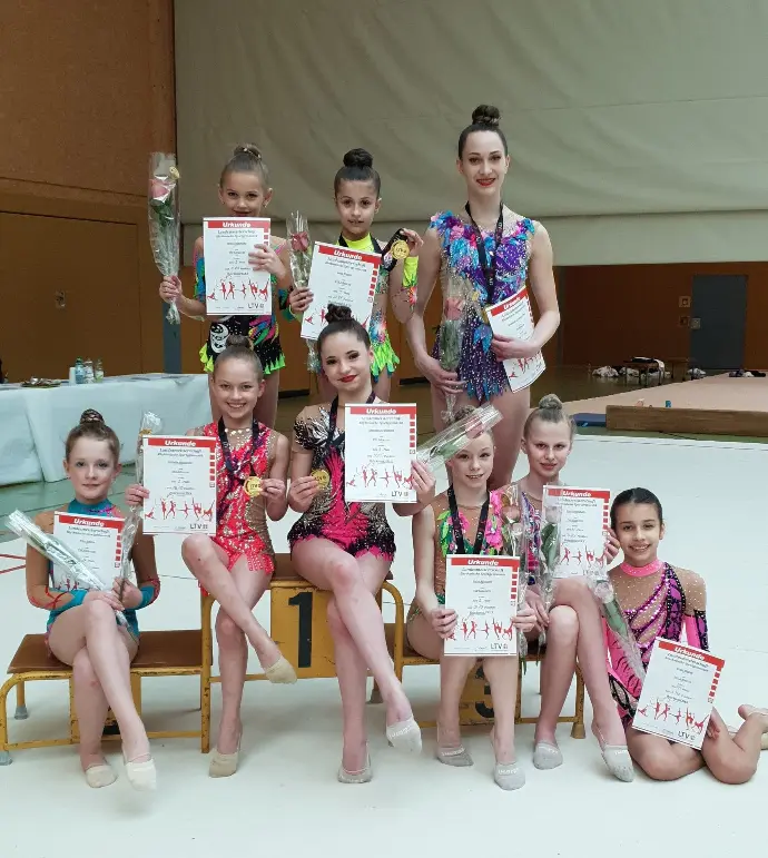 Im September absolvierten Jana, Ksenia, Isabella, Anastasia P., Luise, Helene und Anastasia Th. den Landeskadertest in der RSG mit seinen Bestandteilen Athletik/ Beweglichkeit, Tanz, Körpertechnik und Gerättechnik.